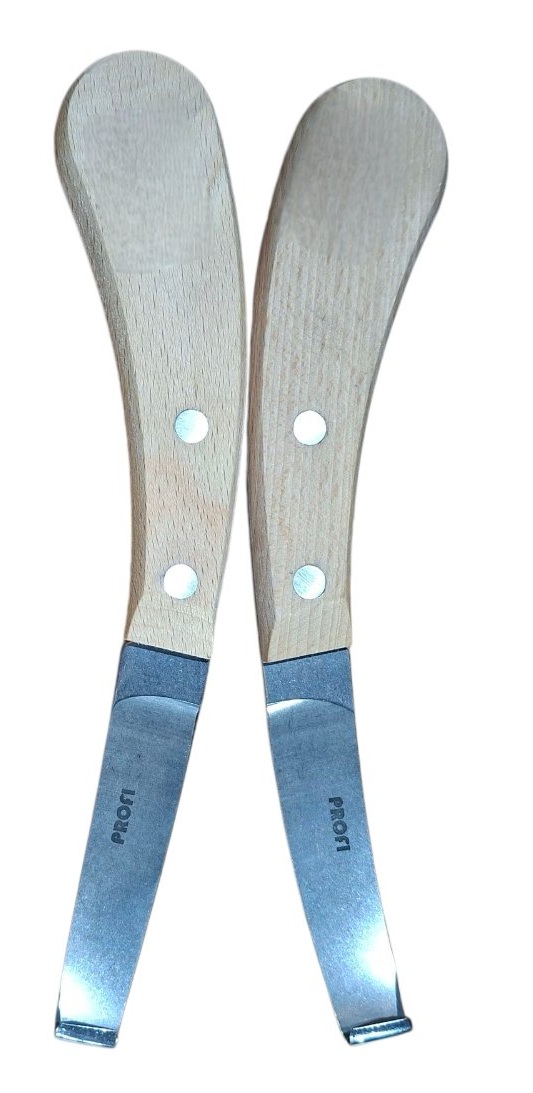 Професійний ніж для копит Profi - це незамінний інструмент для ветеринарів, ковалів та власників тварин, призначений для регулярної розчистки та догляду за копитами коней, великої рогатої худоби та інших копитних. Наявність окремих моделей для лівої та правої руки дозволяє максимально ефективно та зручно обробляти обидві сторони копита, виділяючи відрослий ріг, бруд та усуваючи дефекти.
