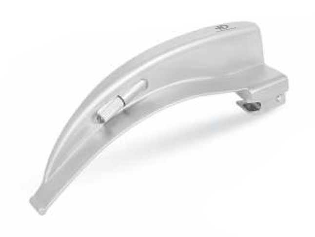 Вигнутий ветеринарний клинок Macintosh розміру №3 (135 мм) від Doctor Devices. Клинок виготовлений з матової сталі для усунення відблисків та підлягає автоклавуванню