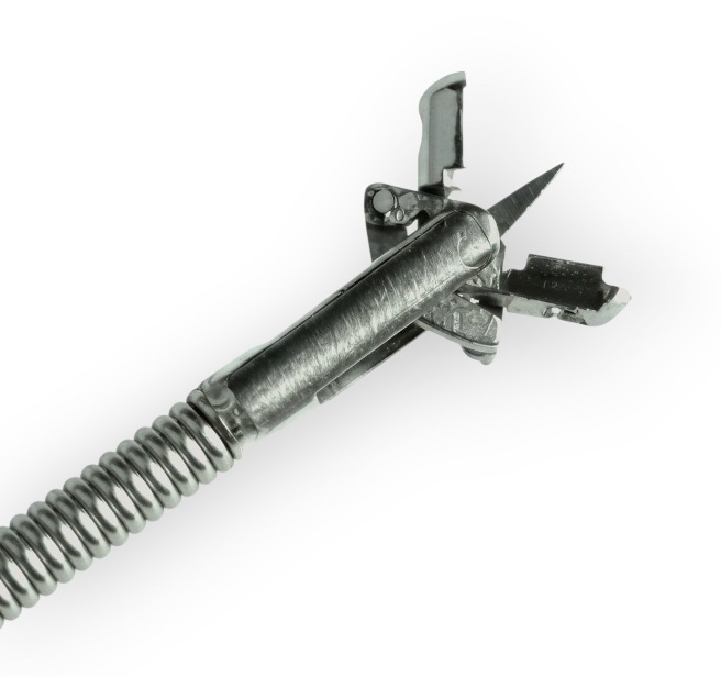 Завдяки гнучкому металевому катетеру з плетеною оболонкою, щипці забезпечують плавне введення та точне позиціювання