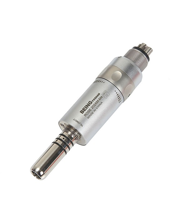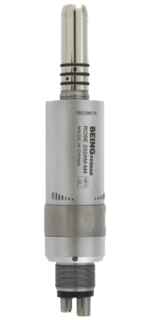 Мікромотор стоматологічний повітряний Being ROSE 202AM-M4 - надійний та контрольований мікромотор стоматологічний для ветеринарної практики, який забезпечує ефективну роботу з різними типами наконечників. Цей компактний повітряний інструмент створений для використання в умовах клініки, де важливі точність, стабільність і безпека. Завдяки підтримці обертання в прямому та зворотному напрямку, ROSE 202AM-M4 чудово підходить для широкого спектра стоматологічних процедур.