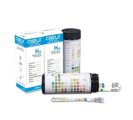 Тест-смужки DIRUI H-10 — це високоточний, швидкий та зручний інструмент для комплексного аналізу сечі у ветеринарній практиці. Вони призначені для якісного та напівкількісного визначення 10 показників, що мають клінічне значення при діагностиці захворювань у тварин: уробіліноген, білірубін, кетони, кров, білок, нітрити, лейкоцити, глюкоза, питома вага та рівень рН. Смужки можуть використовуватись як для візуального зчитування результатів, так і з автоматичними аналізаторами DIRUI (моделі H50, H100, H300, H500), що забезпечує високу ефективність при роботі з великим потоком пацієнтів.