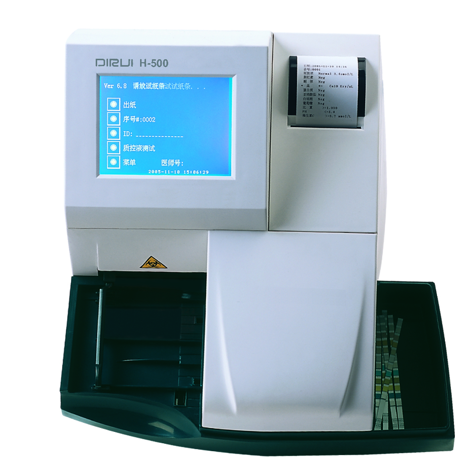 Напівавтоматичний аналізатор сечі тварин H-500 Vet Dirui — це сучасний лабораторний прилад, спеціально створений для ветеринарної медицини та тваринництва. Він дозволяє швидко й точно проводити клінічний аналіз сечі для собак, котів та інших тварин за допомогою тест-смужок для аналізу сечі тварин, що особливо важливо в умовах обмеженого часу між збором зразка і його дослідженням. H-500 Dirui забезпечує визначення до 11 основних біохімічних показників, включаючи білок, глюкозу, лейкоцити, кров, pH, кетони та інші, що дозволяє своєчасно діагностувати порушення роботи нирок, сечовивідної системи та обміну речовин.