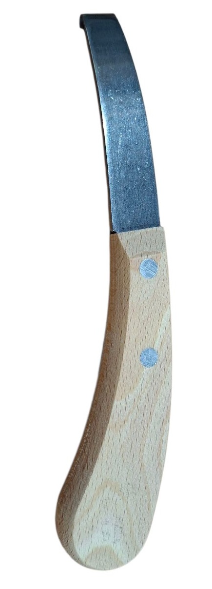 Лезо ножа виготовлено з міцної, стійкої до корозії інструментальної сталі, що гарантує довготривале збереження гостроти та забезпечує чистий і рівний зріз без розшарування рогової тканини. Ергономічна ручка з натурального дерева зручно лежить у руці, не ковзає та знижує втому під час тривалої роботи, а надійне клепкове з'єднання гарантує довговічність інструмента.