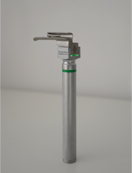 Зібраний ветеринарний волоконно-оптичний ларингоскоп Miller. На фото рукоятка Зеленого стандарту з приєднаним прямим клинком Miller